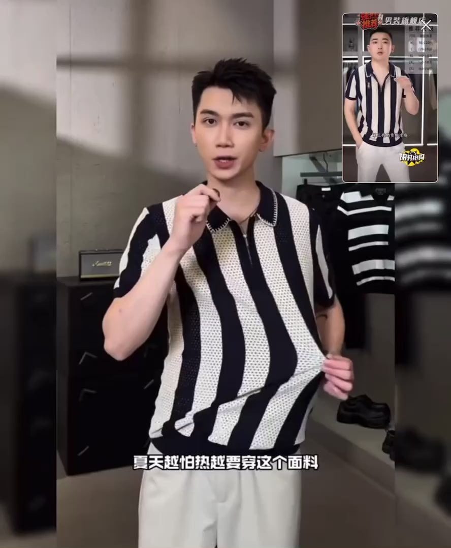 Men’s Striped Zip Polo Shirt (Premium Knit)